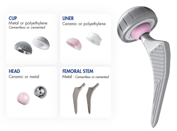 Total Hip Replacement (THR):In a Total Hip Replacement, both the ball (femoral head) and the socket (acetabulum) of the hip joint are replaced with artificial components. These components can be made from materials such as metal, plastic, or ceramic. THR is highly effective for treating advanced arthritis and severe hip joint damage, providing significant pain relief and improved joint function.